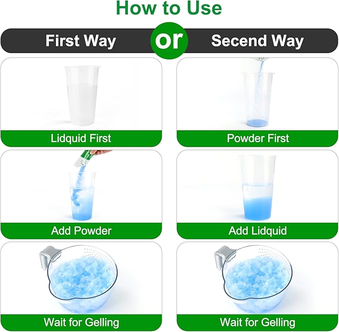 • Easy to Use - Poo Absorbent powder Included 25/50packs of individually packed portable toilet gel, 10g per pack, one bag camping toilet poo gel will treat 0.5-1 gallon(1900ml-3800ml) of liquid waste, depending on the consistency that you desire, add more as needed for solid gel. Easy to use and carry, perfect for camping toilet, portable toilet, bucket toilet, porta potty, luggable loo, emergency toilet for camping, traveling, hiking, emergency situations
