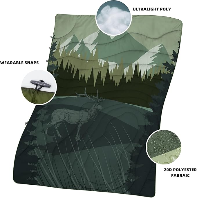Camping Blanket Puffy - Outdoor Stadium Blanket Wearable, Lightweight, Packable, Machine Washable Camping Quilt for Traveling, Picnic, Beach, Party