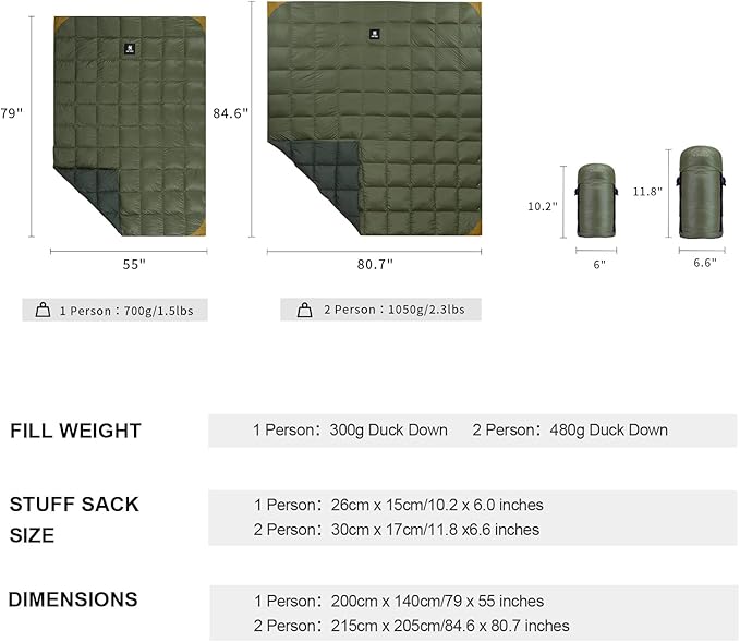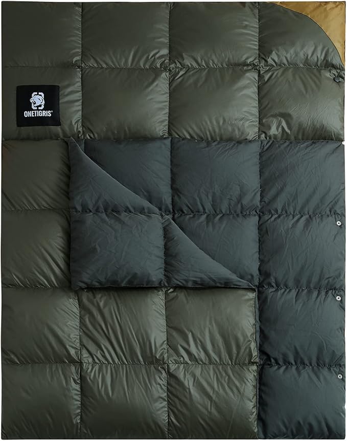 OneTigris Down Camping Blanket Warm, Lightweight, Packable, Puffy Outdoor Travel Quilt for Cold Weather Backpacking Hiking Stadium Gardening Beach Picnic