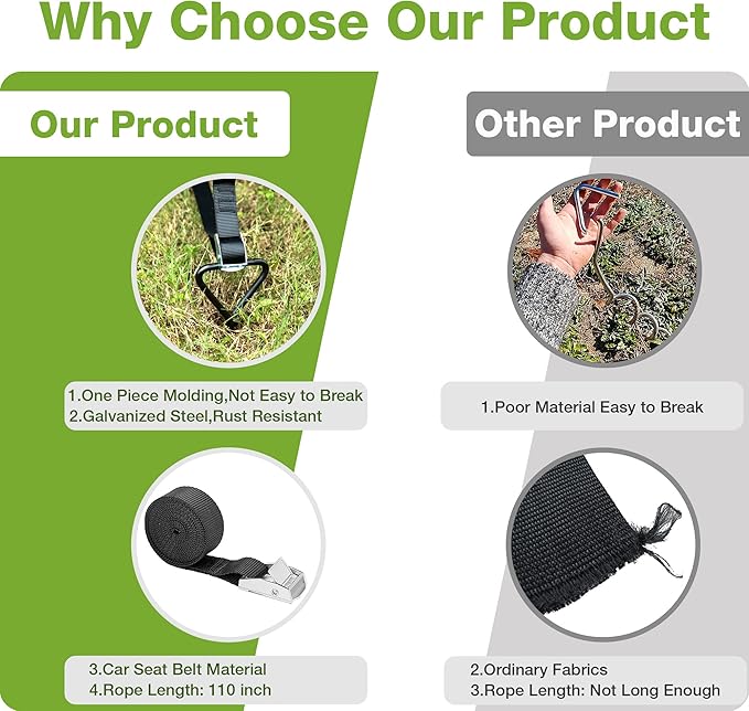 • Four spiral anchors are made from durable, rust-resistant galvanized steel.this pack of 4 anchors comes with heavy-duty seat belt-grade belt straps with buckles,safety caps for stakes sharp.