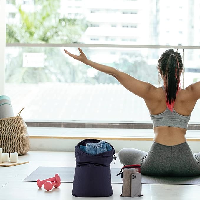 • 5 pieces in different sizes. Size Small (crimson taffeta with black mesh): 1.4L (6.3"x9"); Size Medium (olive taffeta with black mesh): 2.7L (8"x10"); Size Large (brown taffeta): 7.5L (11"x14"); Size X-Large (Navy taffeta): 15L (13.5"x18"); Round mesh pouch (black): 3L (Ф5"x9"). They allow you to pack a variety of things efficiently at home, or when you go to gym.