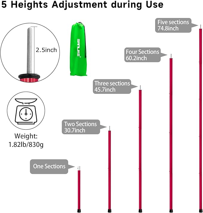 • Perfect Adjustable Design Length Satisfies Your Multiple Height Needs:Each tarp tent pole has 5 sections that extend from 31.3 inches to 74.8 inches in length.The middle SAN LIKE tarp poles are all the same length, and you can choose how many to carry as needed.