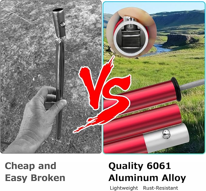 • Tarp Poles Aluminum Provides Easy Way for Carry:Our tent poles are made from 6061 aluminum alloy, it's only 0.76 kg/1.67lbs,with the additional bag make the collapsible pole well to carry,they can be taken to camping, backpacking, hiking or anywhere you want.