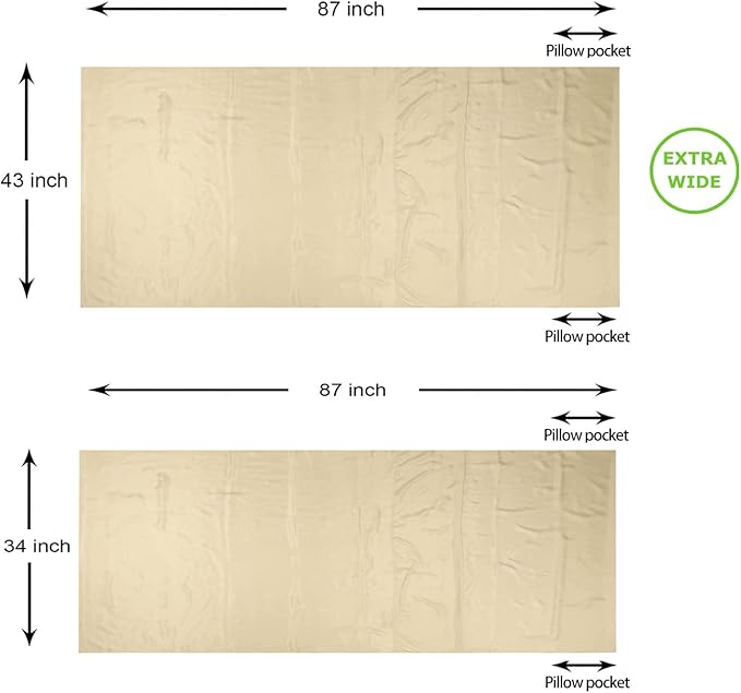 • EXTRA WIDE AND SUPER LIGHTWEIGHT: Two sizes for option: 87”x43” is an extra wide size, which is about 9” wider than a normal single liner. There’s generous space for the tall people to move freely. It weighs only 6.3oz. (180g); The 87"x34" liner weights 5oz. (140g), which is a comfortable size for one person. The liner is compacted in a tiny ripstop nylon stuff bag. With an attached hook on the carry case, you can link it up with the liner after taking the liner out, avoid losing the stuff bag.