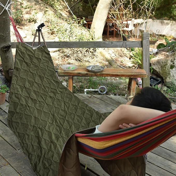 • PRACTICALITY: There is no more practical a piece of gear than the poncho liner! Warm but it breathes,lightweight and easy to pack, store, and wash. The waterproof army blankets can hand or machine wash, which make it are easier to maintenance.