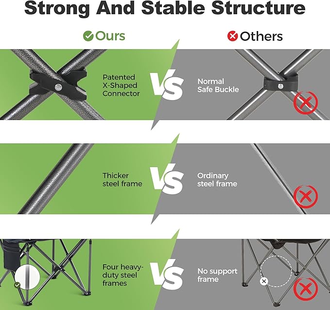 • 【Ultimate Comfort】 Our camping chair features an ergonomic padded high back and armrests, as well as cushioned seating, providing you with the ultimate comfort even for long hours of sitting