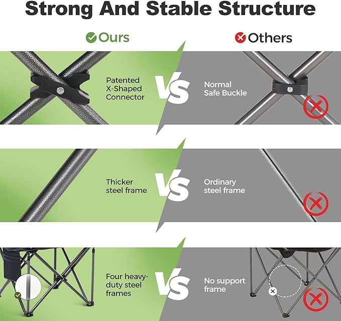 LET'S CAMP Folding Camping Chair Oversized Heavy Duty Padded Outdoor Chair with Cup Holder Storage and Cooler Bag, 450 LBS Weight Capacity, Thicken 600D Oxford