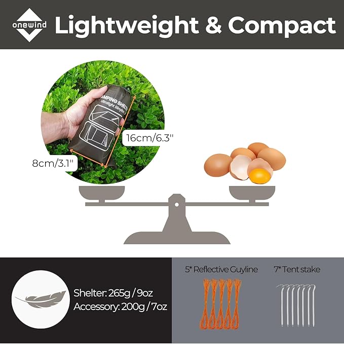 • Premium Emergency Shelter. Onewind Camping Shelter is a professional emergency tent for adventure, survival, camping and hiking. This hybrid tarp shelter blends camping tarp and tent qualities into a simple, versatile super light shelter is designed specifically for Solo Camping with Camping Cot while also providing extra room for your Gear.