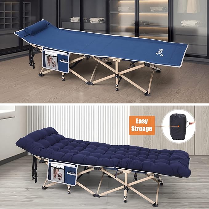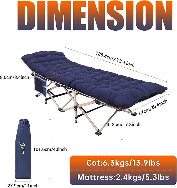 Nice C Camping Cots, Camping Cots with Mattress, for Adults, Folding Cot, with Pillow, Carry Bag & Storage Pocket, Extra Wide Sturdy, Holds Up to 500 Lbs (1, Mattress Navy)