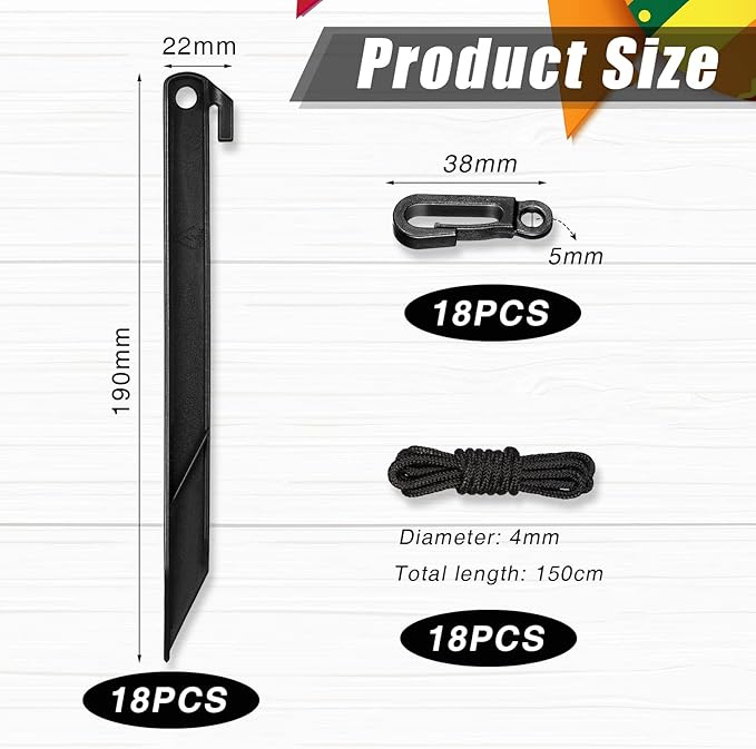 • Sufficient Quantity: you will receive 18 sets replacement yard inflatable accessories, including 18 pieces of plastic hooks, 18 pieces of yard plastic stakes and 18 pieces of nylon ropes, enough to meet your daily use needs