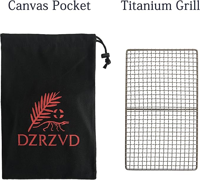 • 【EASY TO USE & CLEAN】Ready to use right out of your backpack,DZRZVD Titanium Grill lets you never accidentally dump food into the fire again.The titanium material makes it easy to clean,and the matching canvas pocket makes it easy to organize.