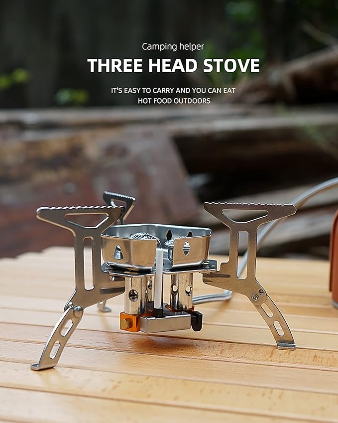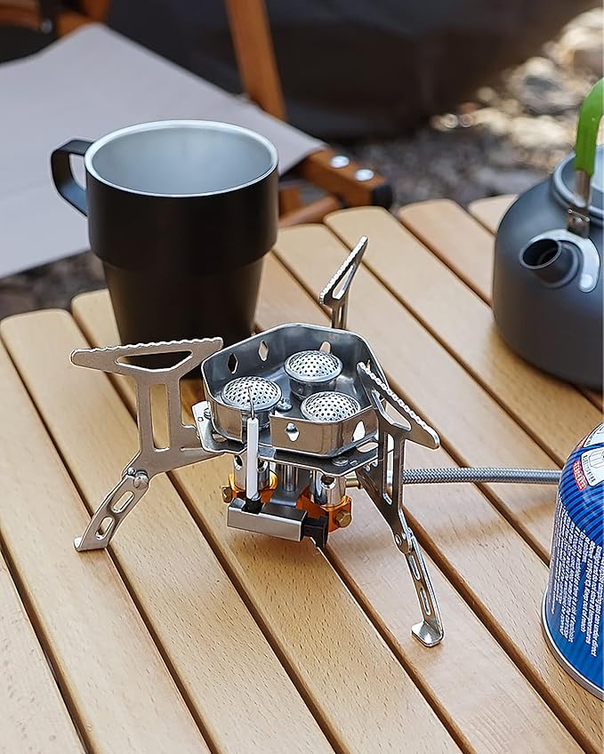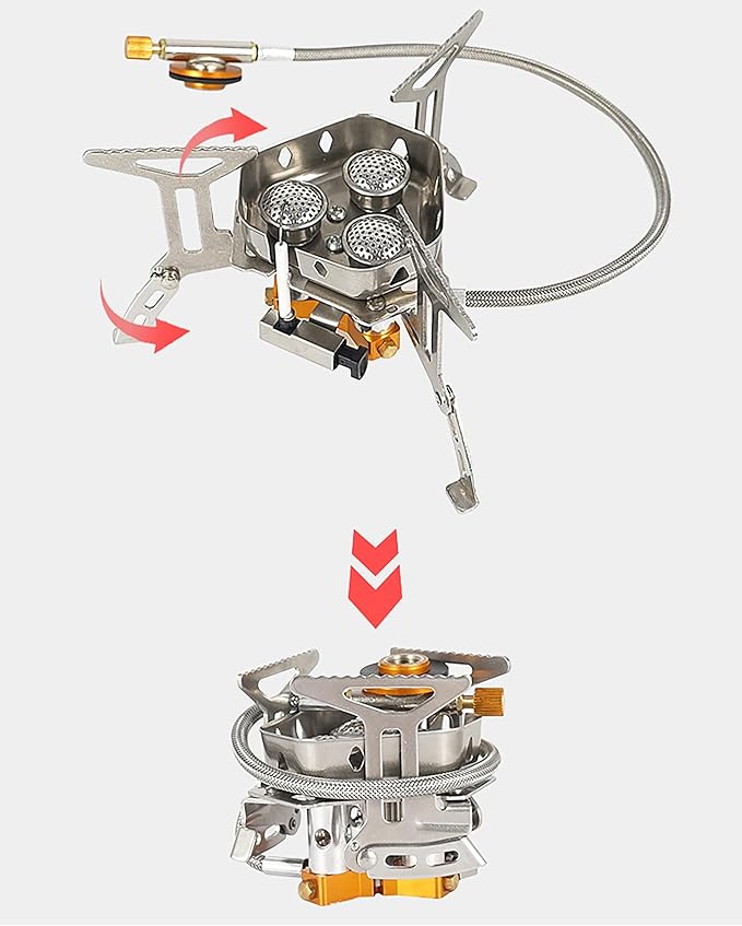 • Broad compatibility: DZRZVD windproof portable camping stove propane with piezo ignition is compatible with any 7/16 thread single butane/butane-propane mixed fuel canisters (EN 417).Power : 5800W, Load bearing: 60lb.