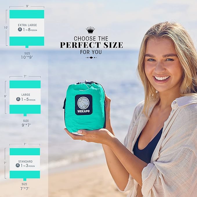 WEKAPO Beach Blanket Sandproof Waterproof, Extra Large Beach Mat, Oversized & Compact Sand Free Mat Quick Drying, Lightweight & Durable with Stakes & Corner Pockets