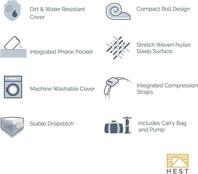 HEST Foamy Camping Mattress Pad - Memory Foam Portable Roll Up Sleeping Cot Mattress for All Adventures - Dual Layer Comfort & Support - No Pump Needed - Water-Resistant Design - Easy Carry Handle