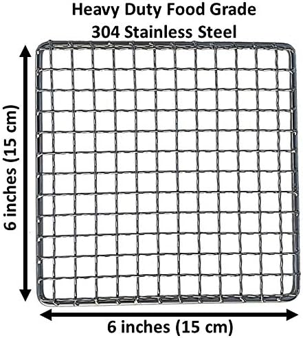 • One (1) Small 6 x 6 inch (15 x 15cm) & ONE (1) Large 6 x 12 inch (15 x 30cm), food grade 304 Stainless Steel Bushcraft Grill Grate, Strong and Lightweight. (Small Grill, Large Grill & Bag ONLY)
