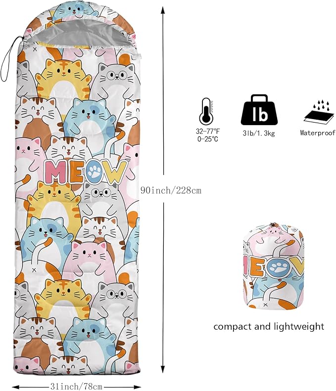 • FITS FOR 3 SEASONS: SIZE - 31 by 90 inches (W x D). Our sleeping bag can be used in 3 seasons with a design temperature of 32℉-77℉(0℃-25℃). These bags also have a weather resistant waterproof design to keep you warm and prevent you from any dampness.