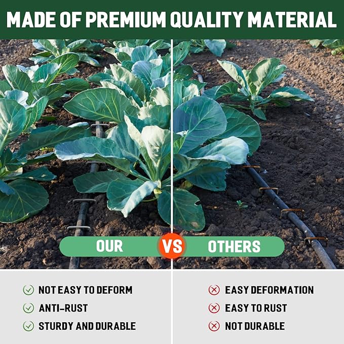 • 【Numerous uses】Landscape pins can secure garden fabic, ground cover, animal fence, weeb barrier fabic, electric wires, raising bed, vegetable bulb, ect.