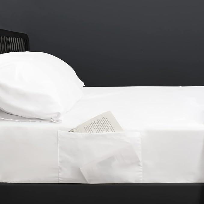 • Super Soft and Comfortable with Side Pocket: Made of 100% fine brushed microfiber polyester that's durable and soft to the touch, you'll sleep better and wake up more refreshed the next day! The fabrics are designed to wick away heat and moisture to keep you sleep through the night. They won't irritate your skin and make you feel uncomfortable while you sleep. They're durable and won't tear easily. And they are low-maintenance, easy to clean and fade resistant. Side pocket sheets are perfect for keeping things like remote controls, cell phones, glasses, headphones, pens, etc. close by while you relax in bed.