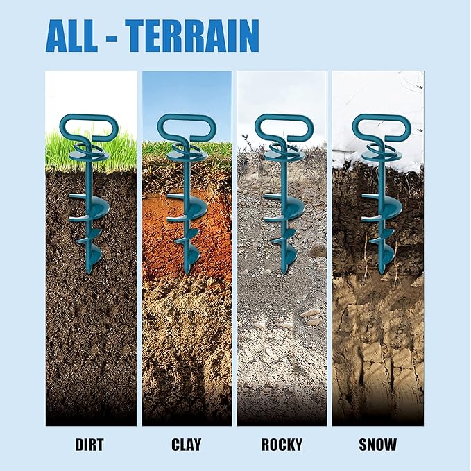• Easy Installation:This dog stake boasts an ergonomic elliptical handle, designed for effortless gripping and comfortable use. The curved spiral blade enables it to glide effortlessly through various types of soil.The included EZ-lever Installation tool makes setting up the anchor a breeze. You can have it securely in the ground within minutes.