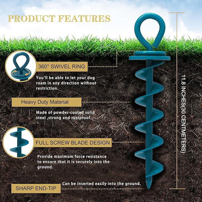 • DESIGNED IN THE USA! Your 360-degree Heavy Duty Tie Out Stake has exceptional build quality and is made to last. Each purchase comes with One year after-sale protection upon registration! Have issues? Our experts are on standby and will reply to you in 12 hours or less.