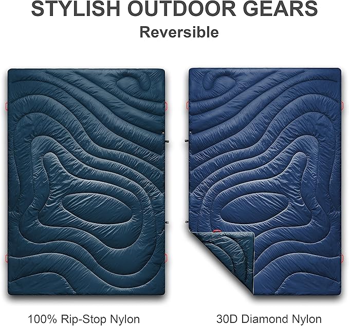 Camping Blanket | X-Large, Wind and Waterproof Warm Puffy Blanket Quilt | Lightweight Portable | Outdoor Concerts, Picnics, Backpacking, Travel, Hiking, Beach, Stadium (Deepsea Blue)