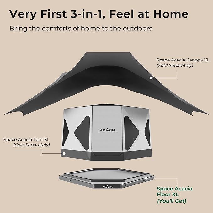 • 3-IN-1 MODERN OUTDOOR DWELLING SYSTEM: 【NOTICE please: Tent, Canopy, Floor and other accessories are sold separately】The Space Acacia consists of a spacious, modern glamping tent, the first-of-its-kind proprietary air floor and the innovative, temperature-adjusting canopy. All three thoughtfully designed components work in harmony to enable you to live an comfort indoor lifestyle outdoors.