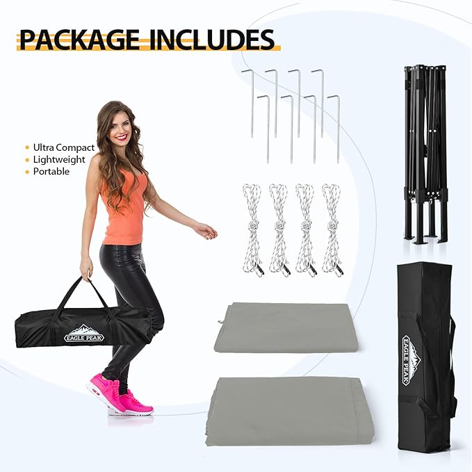 • EASY TO SETUP AND PUT AWAY: The EAGLE PEAK pop up system is more flexible and makes setup easy. The frame glides when opening and closing, enabling one person to easily open and close the canopy .