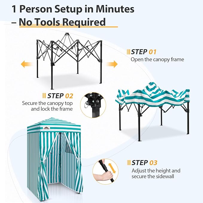 • LIGHTWEIGHT & ULTRA COMPACT: Changing Dressing Room has an ultra-compact, 3-part adjustable steel leg extension system. The Cabana is easy to store and carry, instantly folding down to just under 3 feet tall, 6.30x6.30x32.28in, 16x16x82 cm .