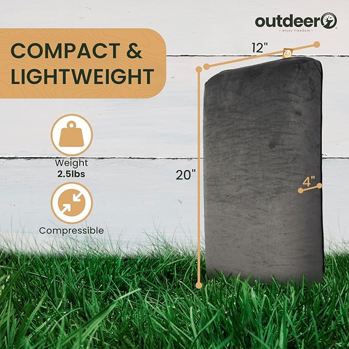 • 🏕️ [COMPACT & LIGHTWEIGHT] - Our 20x12x4" CAMPING PILLOW is compressible, so it won’t take up much space in your traveling bag. Plus, it only weighs 2.5 lbs. – perfect for those who like to travel light.