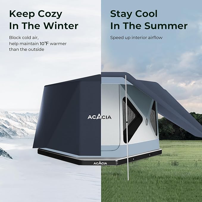 • 3-IN-1 NEW CAMPING SYSTEM: The Space Acacia consists of a spacious, modern glamping tent, the first-of-its-kind proprietary air floor and the innovative, temperature-adjusting canopy. All 3 thoughtfully designed components work in harmony to enable you to live an indoor lifestyle, outdoors.