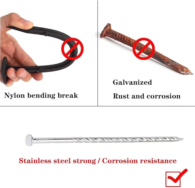 • Stainless Steel Landscape Spikes: Our artificial turf nails are made of high-quality stainless steel solid than plastic, corrosion-resistant than iron, and more abrasion resistant than galvanized metal Landscape Spikes. It Has a longer service life.