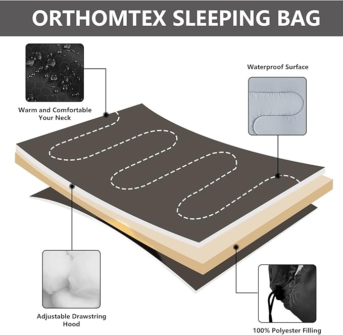 • 【 CLEAN 】 Our waterproof outer shell is easily wiped clean with a damp cloth. In case of heavy soilage the sleeping bag is designed for machine washing as well, ensuring easy maintenance and longevity.