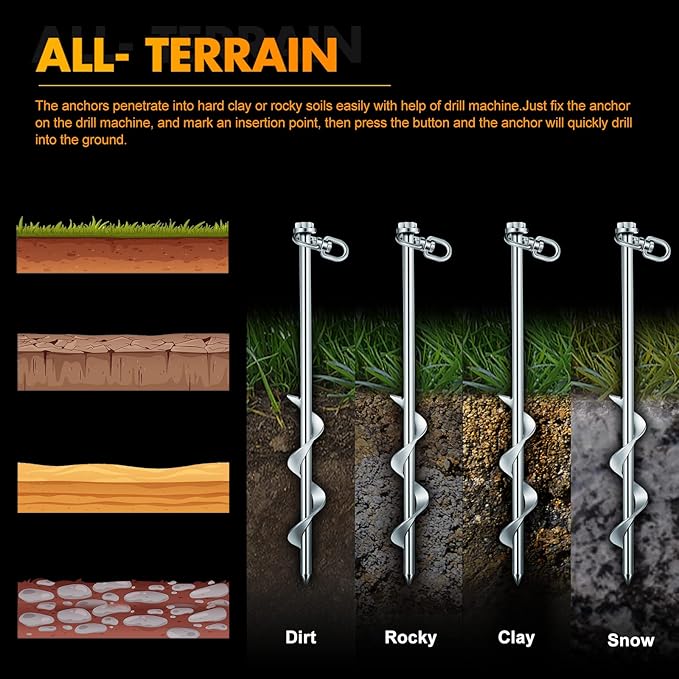 • Easy to Install: the earth anchors are easy and convenient for you to install, with the help of the T handle hex wrench, the pointed ends can easily penetrate into the soil, greatly improving the efficiency, saving your time and energy