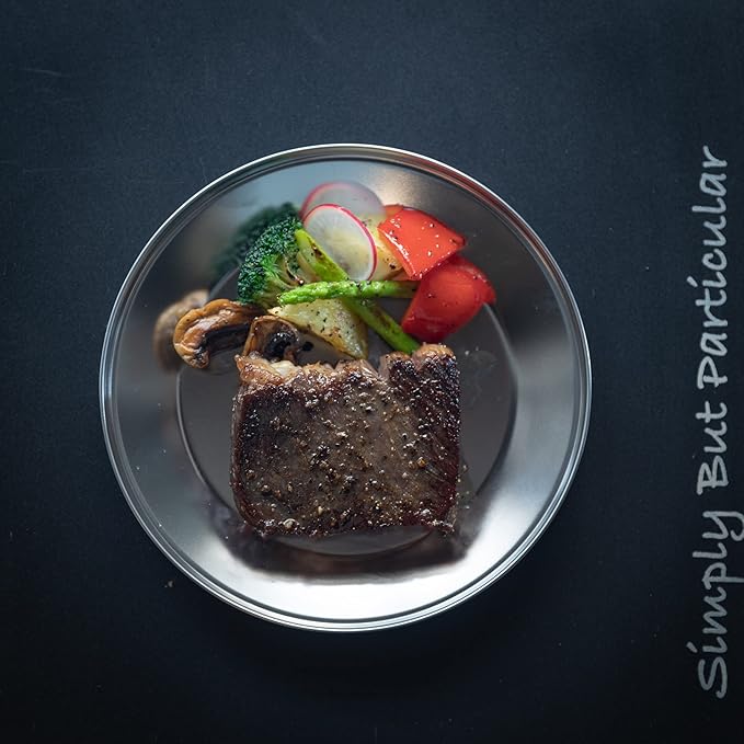 CAMPINGMOON Camping Plates Set Stainless Steel Dishwasher Safe Kitchenware S395 (Pack of 4, 標準)