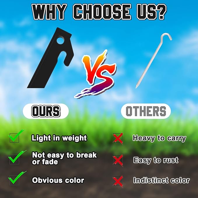 • Reliable and Serviceable: made of quality PP plastic, these camping stakes are stable in structure, not easy to break or fade, light in weight, in exquisite workmanship, you can use them with ease and confidence, the plastic tent tie down stakes won't rust or deteriorate