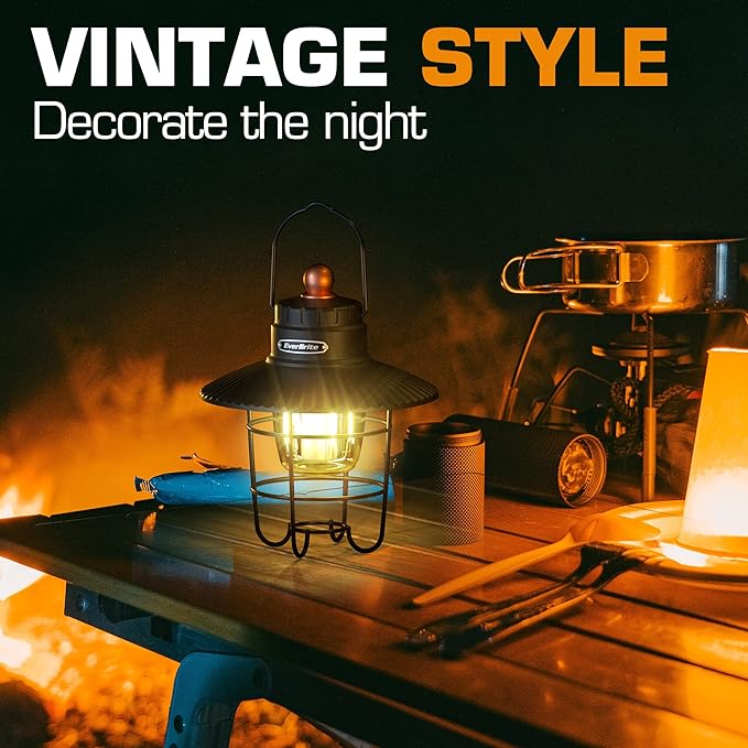 • [550 Lumens & Three Light Modes] With a brightness of up to 550 lumens, Everbrite camping lantern provides 360-degree lighting for your camping. This vintage camp lantern has three modes: filament light on, LED light on, and filament+LED on, which can create different camping atmospheres.