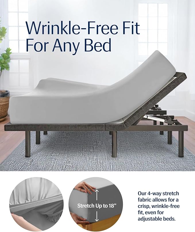 REST® Evercool®+ Cooling Sheet Set, Cali King Size, Light Gray, Breathable Bed Sheets for Hot Sleeper and Night Sweats, with Pillowcases, with Ionic+ Self-Cleaning Silver Yarn for Sensitive Skin, 4PCS