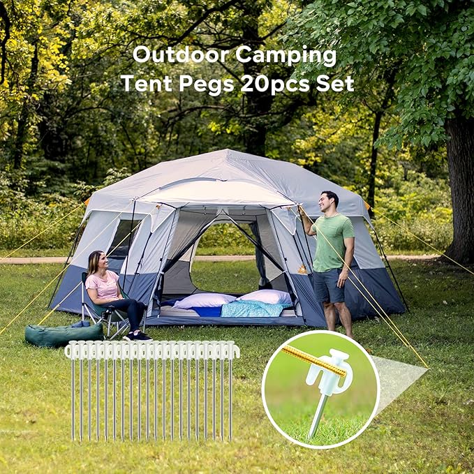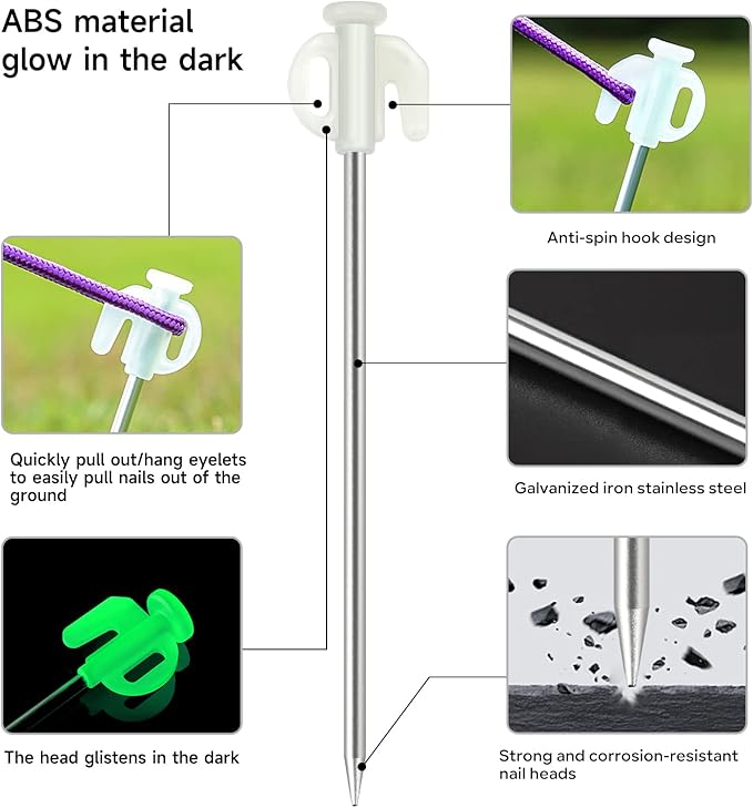 • 【Applicable】Perfect for nailing large tents, canopies, tarpaulins, etc to the ground when outdoor camping and picnicking, suitable for most rough terrain, such as rocky ground, snowy ground, grassland, hard ground, asphalt, desert field and so on.