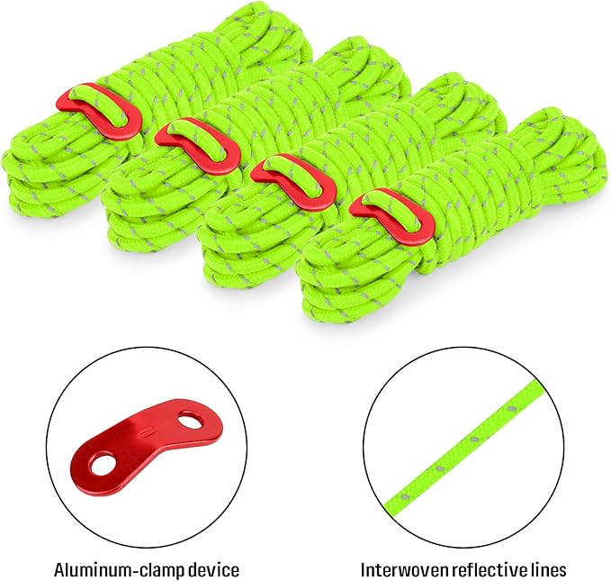 • 【Reflective guy lines with adjuster】bonus 4 pieces 13 ft reflective tent lines to reinforce and replace your lost or damaged tent lines. Each tent line features an aluminum adjuster and reflects when illuminated by light.