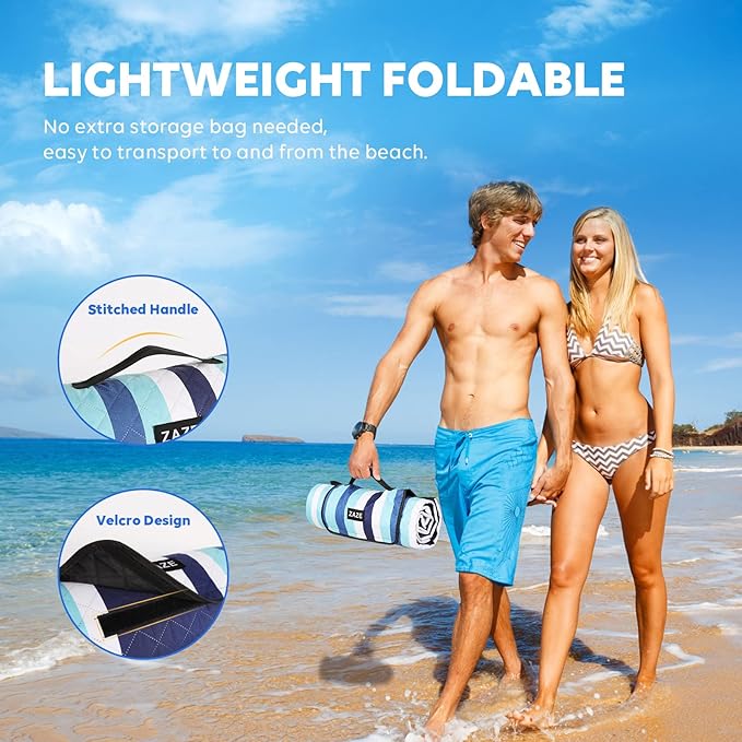 • Oversized for 4-6 Adults: ZAZE beach blanket is 80*80 in extra large size, fitting 4-6 adults and providing ample space for beach gear and family. It offers comfort for sitting or lying down, allowing you to escape the crowded feelings and relax on the beach