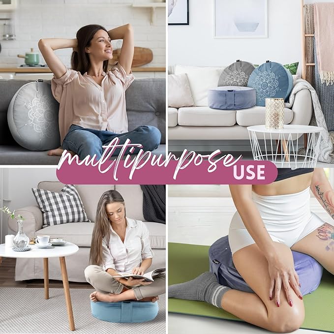 • COMFORT FOR LONG SESSIONS: Our double cushions and meditation floor pillows are designed to support your posture during extended sitting with ergonomic floor seating and floor pillows for adults; Enjoy peaceful meditation with our yoga seat pillow