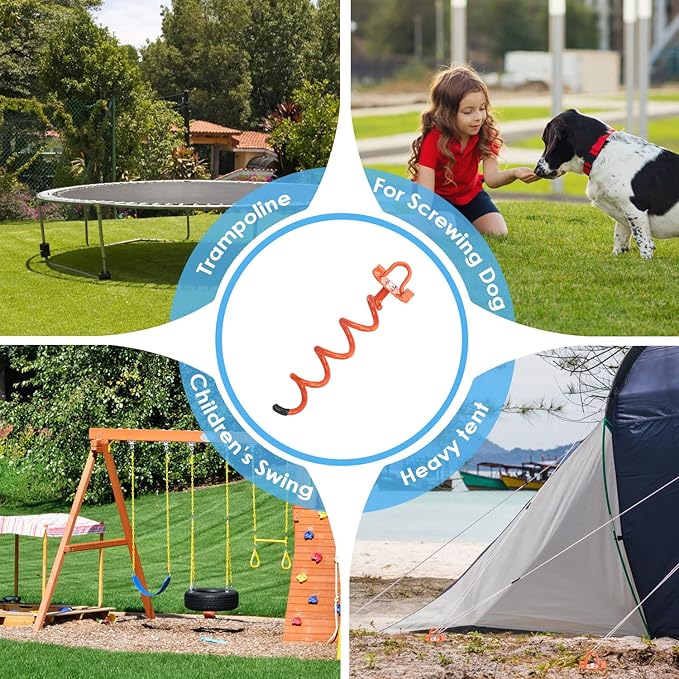• MULTIPLE APPLICATIONS - You can easily use our yard anchor, it can be applied in many places, such as metal fences and wooden fences, dogs, sheds, car ports, gazebos, travel trailers, trampolines, cabins, garages, mobile homes, small buildings, playground sets, Children's swing, slide, deer stand, canopy, camping, etc.
