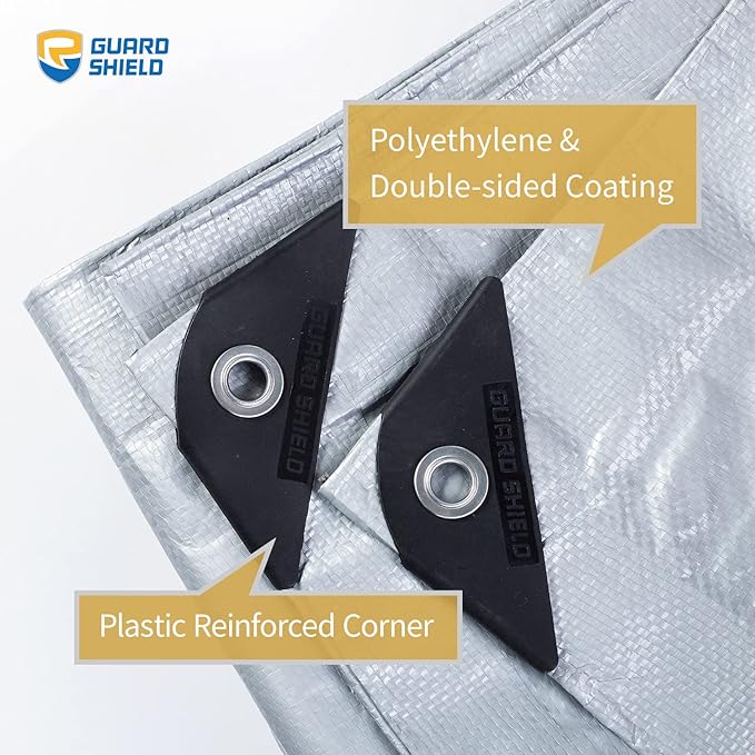 GUARD SHIELD Silver Tarp Waterproof 10x10 Feet Medium Duty All Purpose Poly Tarps Cover 7mil