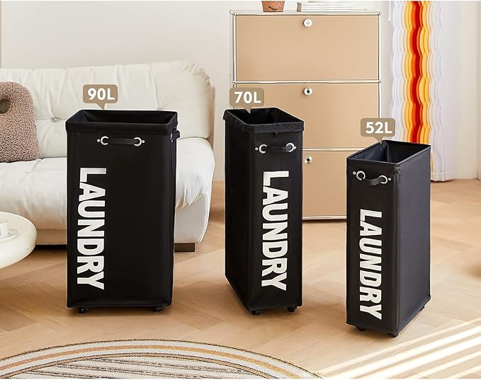 DOKEHOM 29-Inches Enlarged Slim Laundry Basket with Removable Wash Bag on Wheels, Collapsible Rolling Laundry Hamper, Foldable Narrow Corner Clothes Storage Bins (Black)