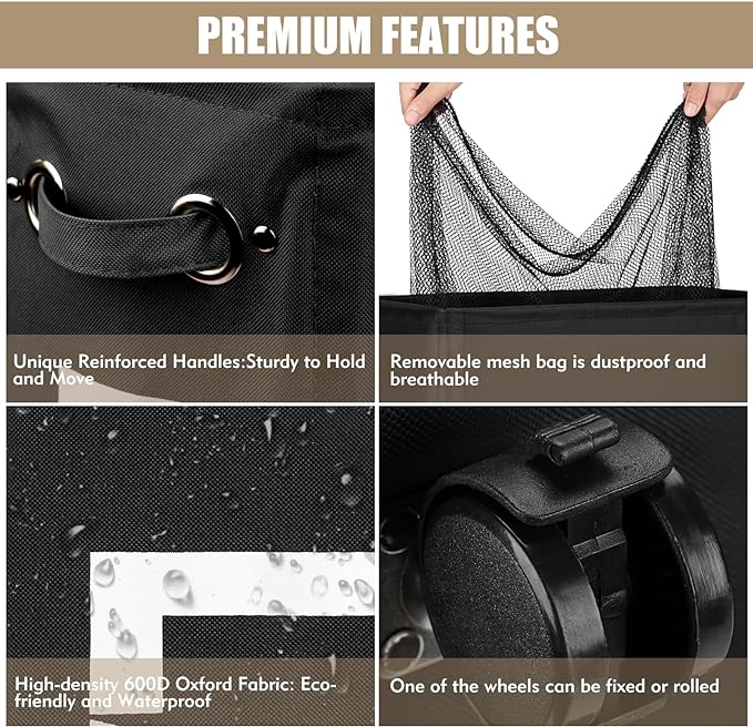 • 4 WHEELS - The laundry hamper on wheels is easy to move, brake on one of the wheels ensure safety for home use