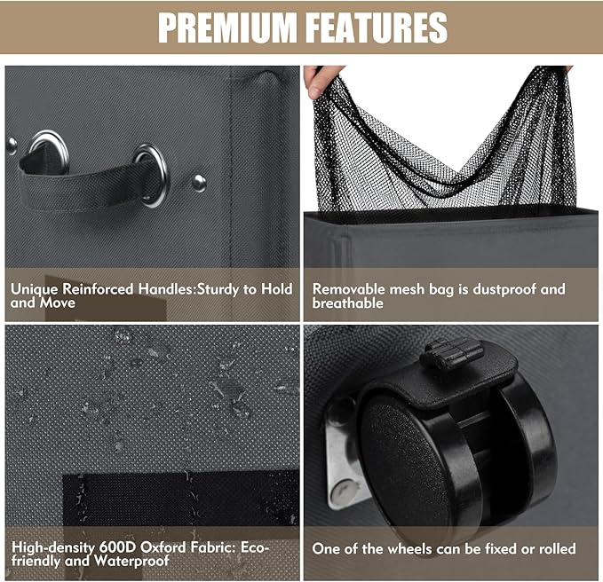 • 4 WHEELS - The laundry hamper on wheels is easy to move, brake on one of the wheels ensure safety for home use