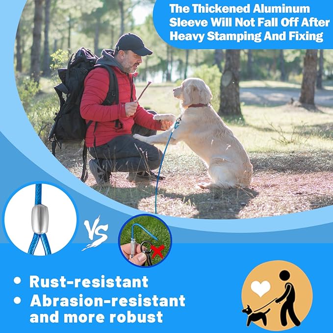 • DURABLE MATERIAL:The steel cable is very strong, wrapped in a soft PVC protection tube, durable, rust-proof, high-strength anti-bite, not easy to be torn by the dog, and can be used for a longer period of time.