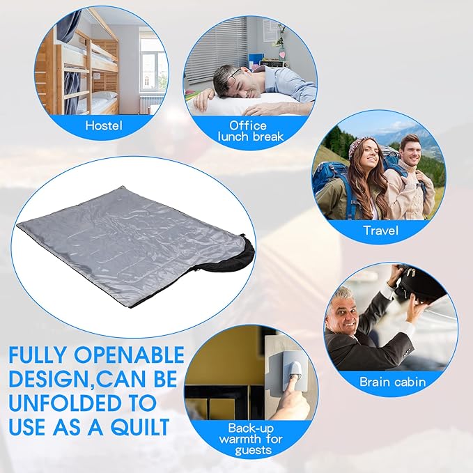 • Lightweight and Portable: each adult sleeping bag weight around 2 pounds, come with a compression sack, lightweight and easy to carry around. Roll control design makes folding quick and convenient to storage, saving you more time, suitable for indoor and outdoor use