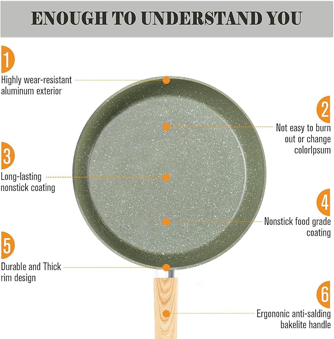 • Kitchen Cookware Set 12 Pieces: Include 8-inch fry pan / 11-inch fry pan / 9.7-inch Deep Fry Pan with lid / 1.5Q saucepan with lid / 3Q casserole with lid / 5Q casserole with lid / 2 pcs silicone utensils. Easy Clean & hand wash recommend