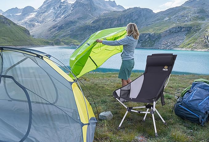Nice C Ultralight High Back Folding Camping Chair, Backpacking Chair, Compact & Heavy Duty Outdoor, Travel, Picnic, Festival with 2 Side Pockets, Pillow &Carry Bag (Set of 2 Black)